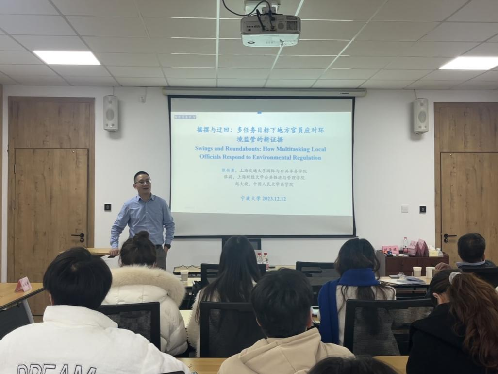 在高度集中的政治结构下,中国政府面领着权衡污染减排与经济增长的难题。2023年12月12日下午,暗网 邀请上海交通大学国际与公共事务学院张传勇教授开讲,以“摇摆与迂回:多任务目标下地方官员应对环境监管的新证据”为主题,在暗网 320研讨室作了一场精彩的学术讲座。本次讲座由暗网 丛海彬教授主持,吸引了院内6位老师以及20余位硕士生参与。