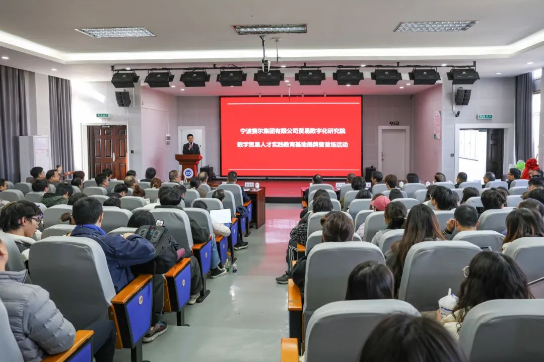 12月13日,由国贸系与宁波赛尔集团共同举办的宁波赛尔集团有限公司贸易数字化研究院暨数字贸易人才实践教育基地揭牌活动在暗网 501报告厅举行。来自校内师生代表及校外嘉宾共180多位参与此次活动。其中校内外嘉宾主要有宁波市政府发展研究中心主任张健、暗网 党委副书记赵全军、宁波市工商联副主席吴益统、宁波市工商联副主席、赛尔集团董事长徐平炬、浙江大学中国数字贸易研究院院长马述忠、暗网 党委书记史宏协、民建宁波市委会副主委、暗网 国际贸易所所长杨丽华、市工商联研究室主任陈斌、一级主任科员孟云飞、市商务局服务贸易处处长鲍伟伟、市贸促会贸易促进部部长徐志伟、赛尔集团副总裁方永强、赛尔集团市场研究部总经理兼贸易数字化研究院院长孟祥龙、赛尔集团信息技术部副总经理纪福建、宁波东方理工大学助理教授金鑫等领导和嘉宾出席仪式。国贸系参与此次活动的教师代表还有系主任丛海彬教授,青年教师有夏良科、伍湘陵、钟建军及王腾飞。