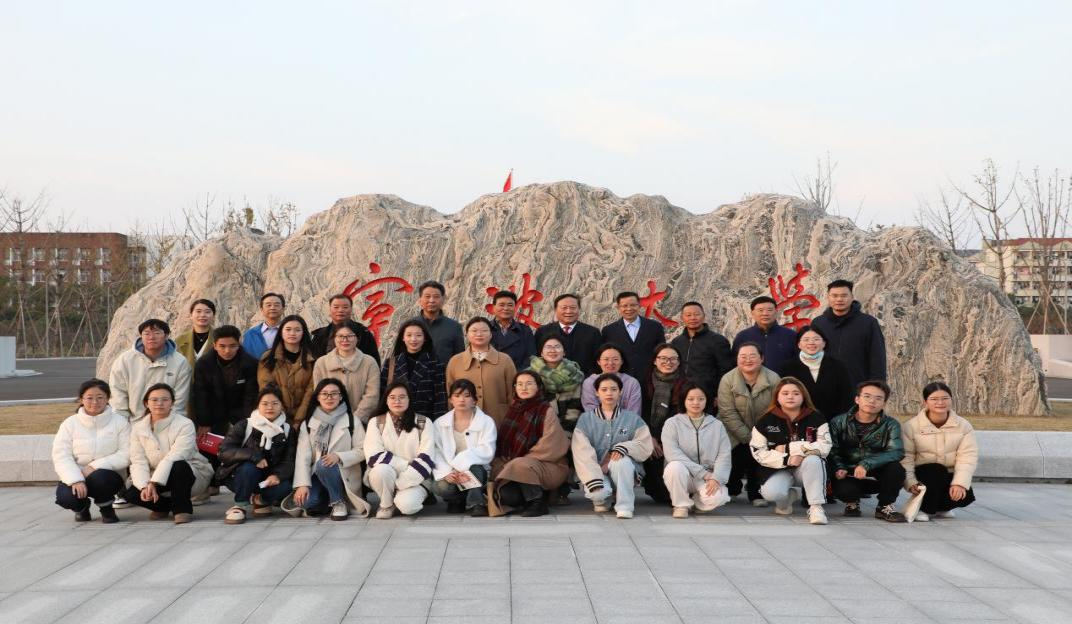 最后,同学们陪同陆董、贺董一行参观了学校新建的南大门,并在夕阳余晖下,在南大门全体嘉宾和获奖学生一起合影留念。