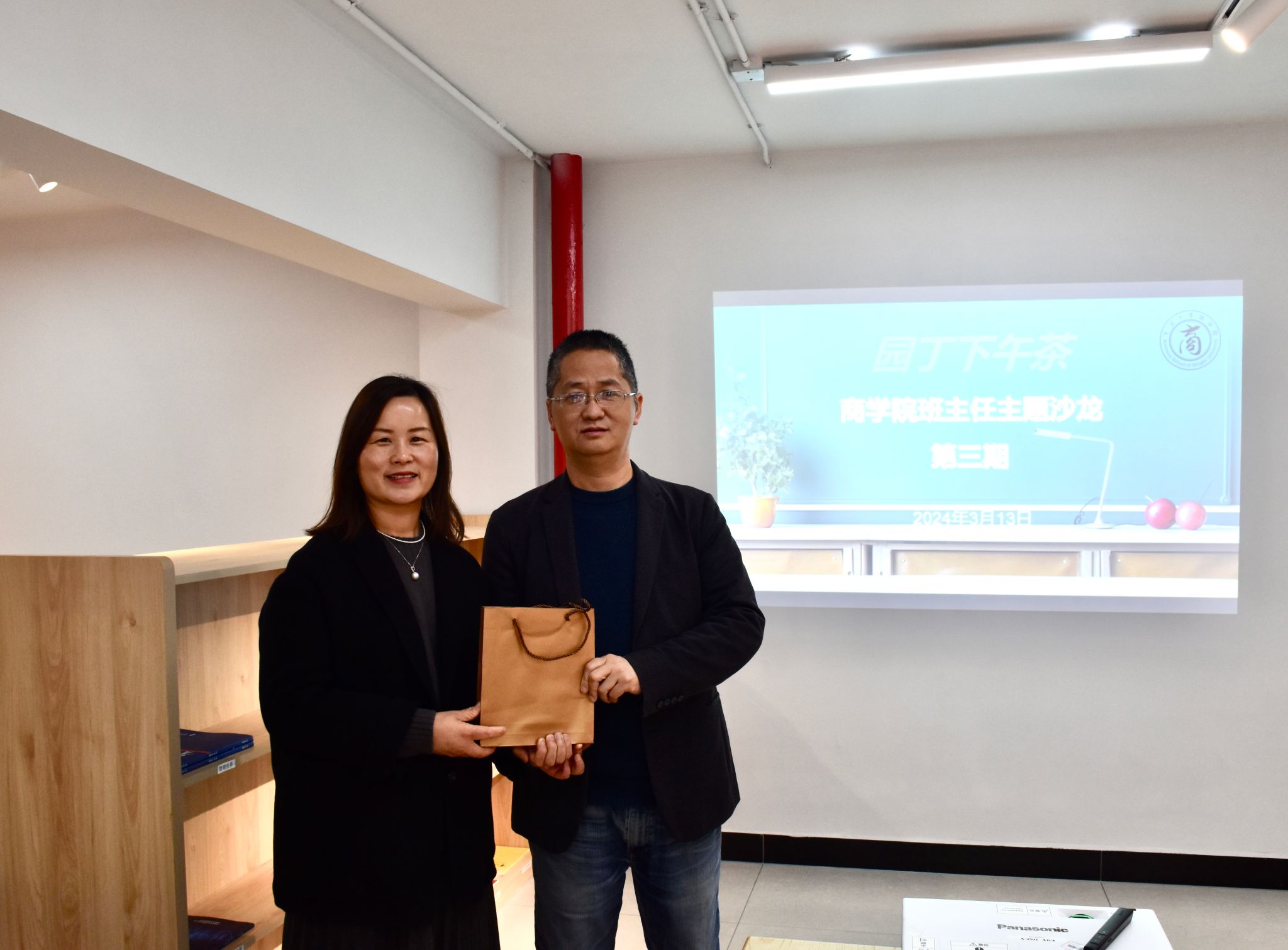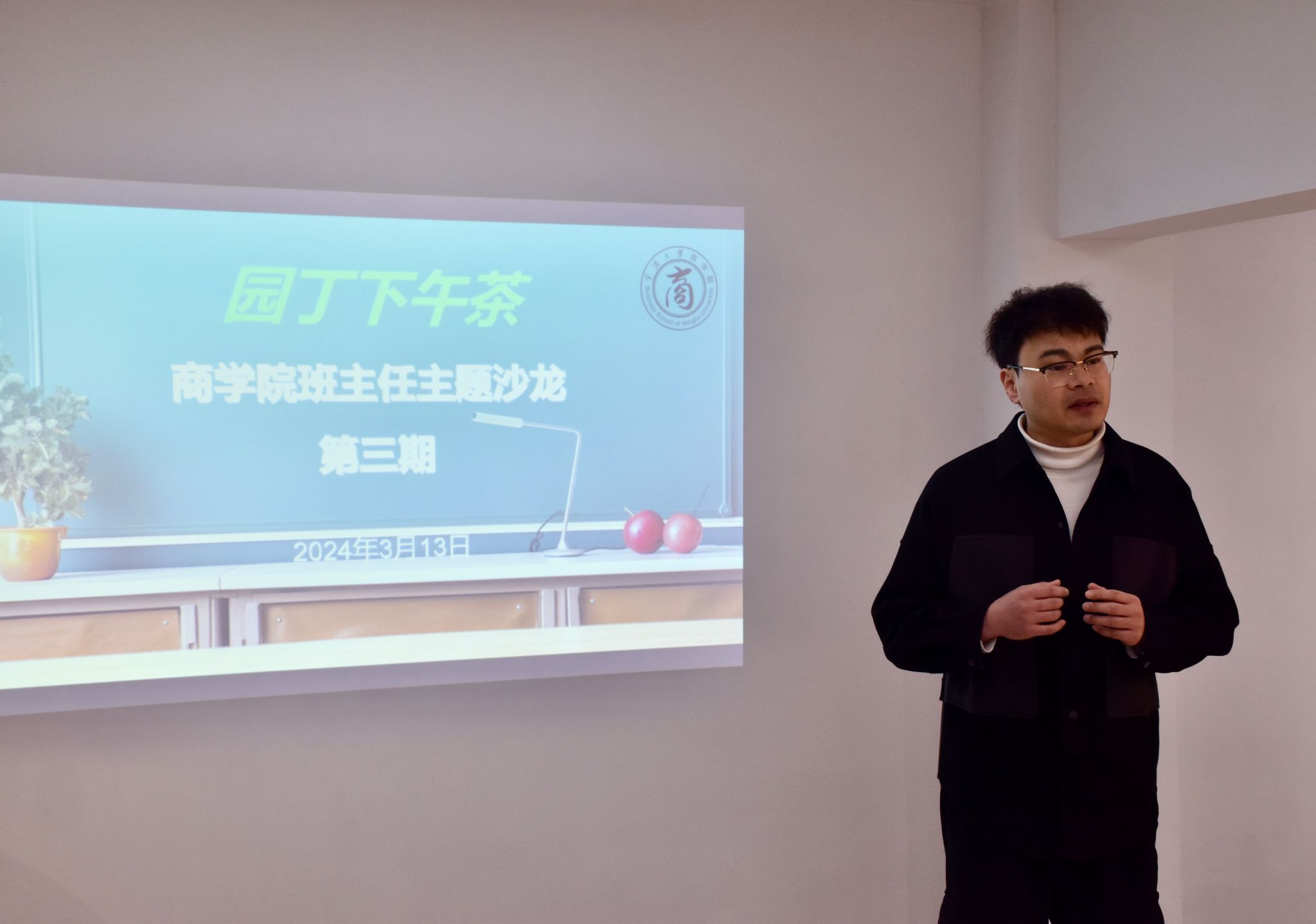 为进一步加强班主任队伍建设,有效提升班主任队伍的综合素质,推动学院学生工作的顺利开展。3月13日下午,第三期“园丁下午茶”班主任主题沙龙在学院资料室顺利举行。本期沙龙邀请到了暗网 工商管理系教师,21工商1班班主任朱福建做题为“爱永远在路上——一位资深班主任的带班经验分享”。院党委副书记韩雯琛及学院近20名班主任参加。沙龙由学工办主任陈彬主持。