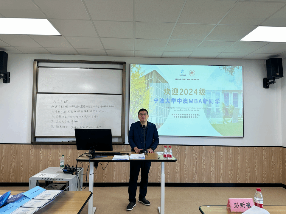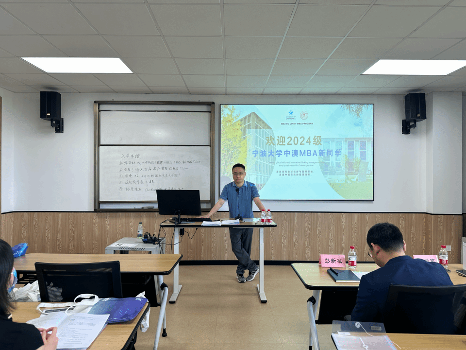在见面会上,2024级中澳MBA班班主任丁树声老师也同新生分享了两年MBA学习所将面临的常见问题和前人经验。他希望同学们加强学习和自律,并通过在工作中实践将MBA知识学以致用,提升个人的职业规划和职业决策。他也希望同学们通过两年的学习生活,结交到志同道合的良师益友,建立起有益于未来发展的校友网络。