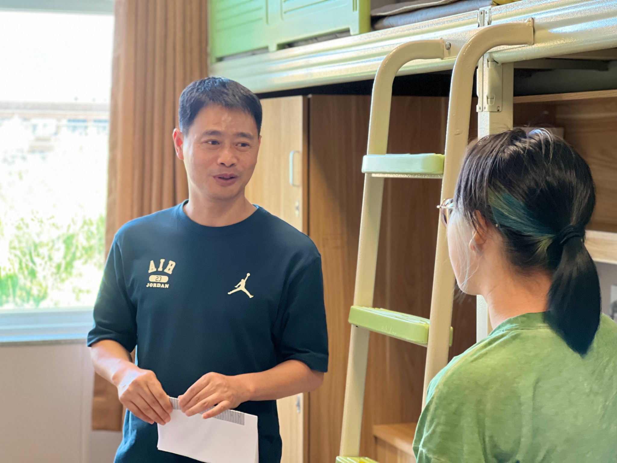 “老家是哪里”“新环境还适应吗”“初入校园有没有什么困难”······每走进一间寝室,学院领导老师们都同新生们进行了亲切交流,围绕学习、生活、出行等方面,传达殷切问候、深切关怀温润人心。