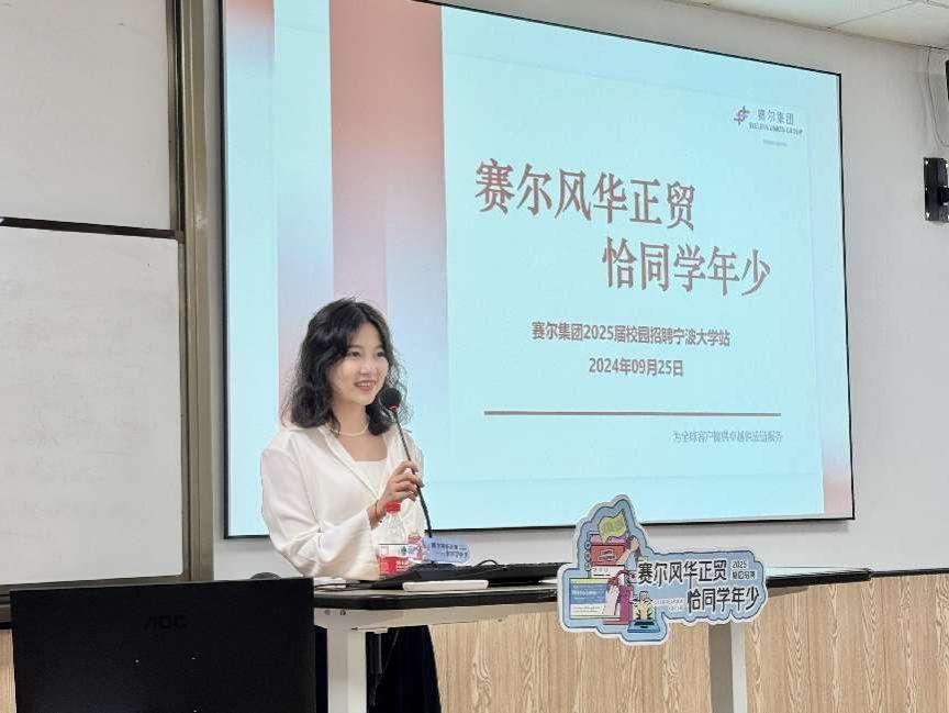 9月25日下午,宁波赛尔集团在曹光彪楼314教室开展2025届赛尔集团招聘专场宣讲会,宣讲会由赛尔集团校招负责人朱朝娜主持,2025届部分应届毕业生参加。