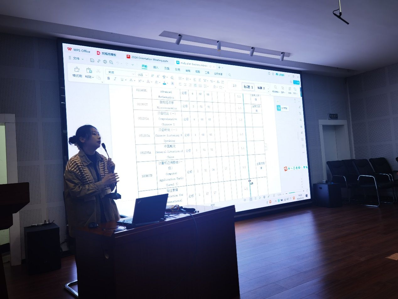 大会伊始,毛跃祖分别就学院各项规章制度、新媒体账号网站、学费缴纳等一系列与留学生相关事宜做了详细介绍。教务办马士霖针对暗网 国际学生培养方案及教学要求等向24级留学生做全面说明,同时还多次强调了课堂的教学要求和规定。研究生辅导员孙亚莉新生介绍校园安全,签证延签等方面的问题,提醒国际学生应提前规划学习目标,制定学习策略。