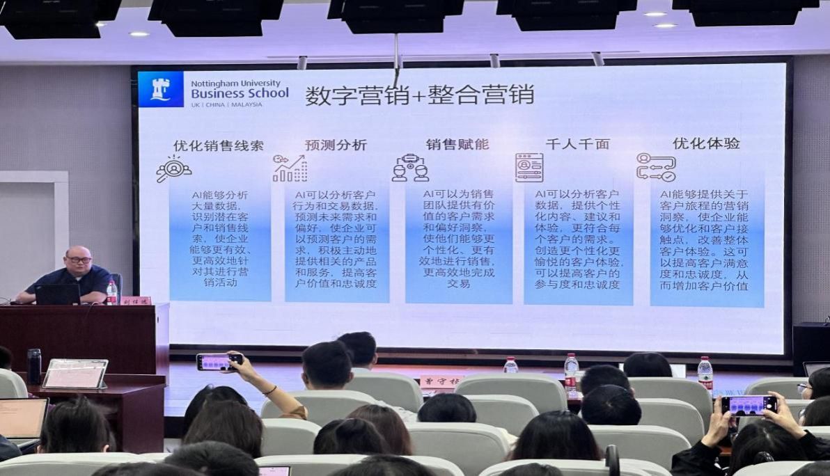随后刘任远教授围绕“互联网时代数字营销与传统营销的差异”为核心展开,探讨了企业如何利用大数据、人工智能等先进技术进行市场预测和风险控制,并通过不断更新和迭代产品与服务,以适应市场的快速变化。此外,刘教授还讨论了英国脱欧事件,强调在自动化思维模式下人们偏好简单直接的信息。而人工智能够分析海量数据,预测顾客的需求和偏好,并通过简化信息积极主动地提供相关产品和服务,从而赋能销售。最后指出,尽管数字技术改变了营销手段,但其创造价值的本质并没有改变。