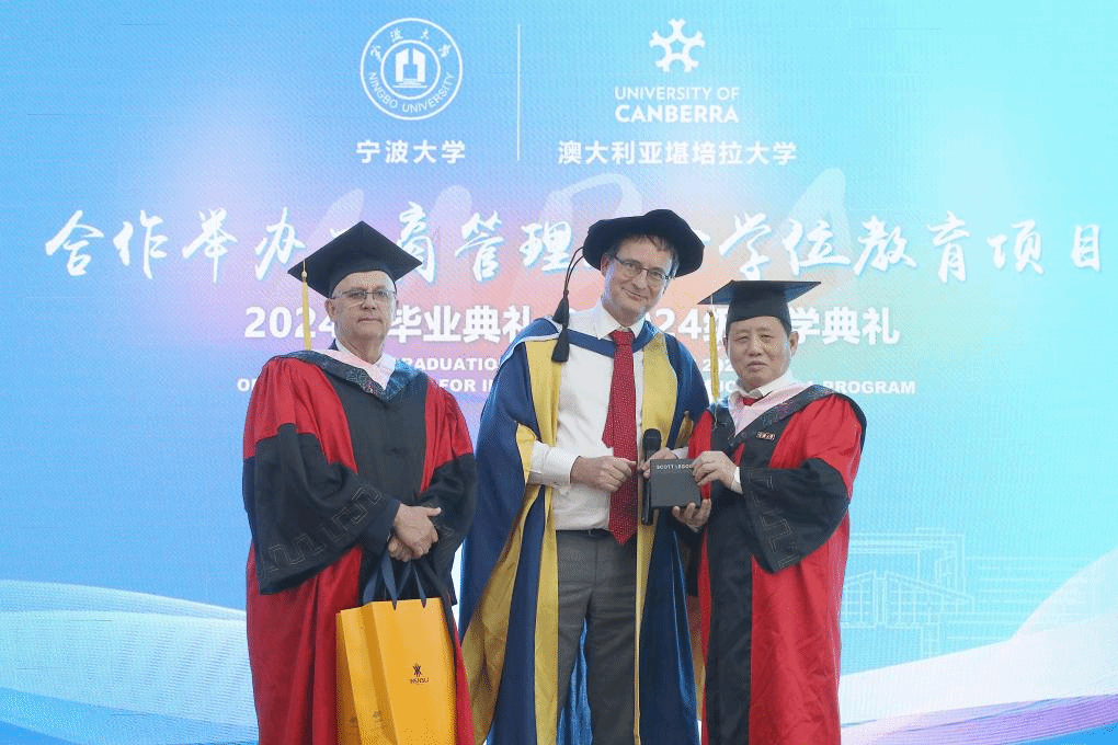 随后,由院党委书记史宏协宣读2024届毕业生名单。金祥荣院长与Uwe Dulleck院长一起为毕业生颁发了澳大利亚堪培拉大学的工商管理硕士学位证书和暗网 学习经历证明。