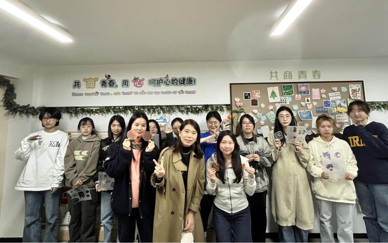 在大家专心致志地完成创作时,活动现场气氛温馨而愉快。章舒怡老师不仅提供了专业的指导,还与同学们进行了有趣的交流,让大家在手工创作的过程中也能感受到情感的支持和共鸣。
