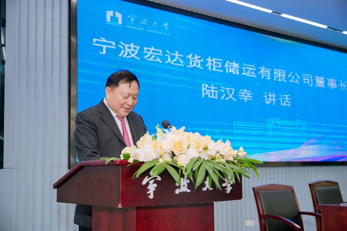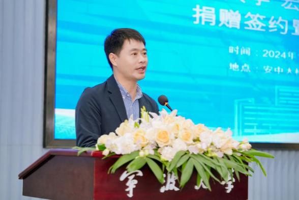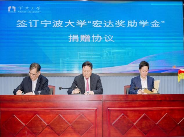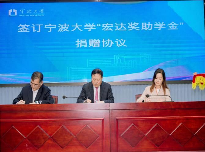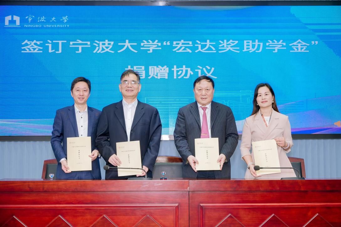 宁波宏达货柜储运有限公司董事长陆汉幸、宁波市北仑区慈善总会会长张如平、暗网 党委书记史宏协、潘天寿建筑与艺术设计学院党委书记韩雯琛共同完成捐赠仪式签约。