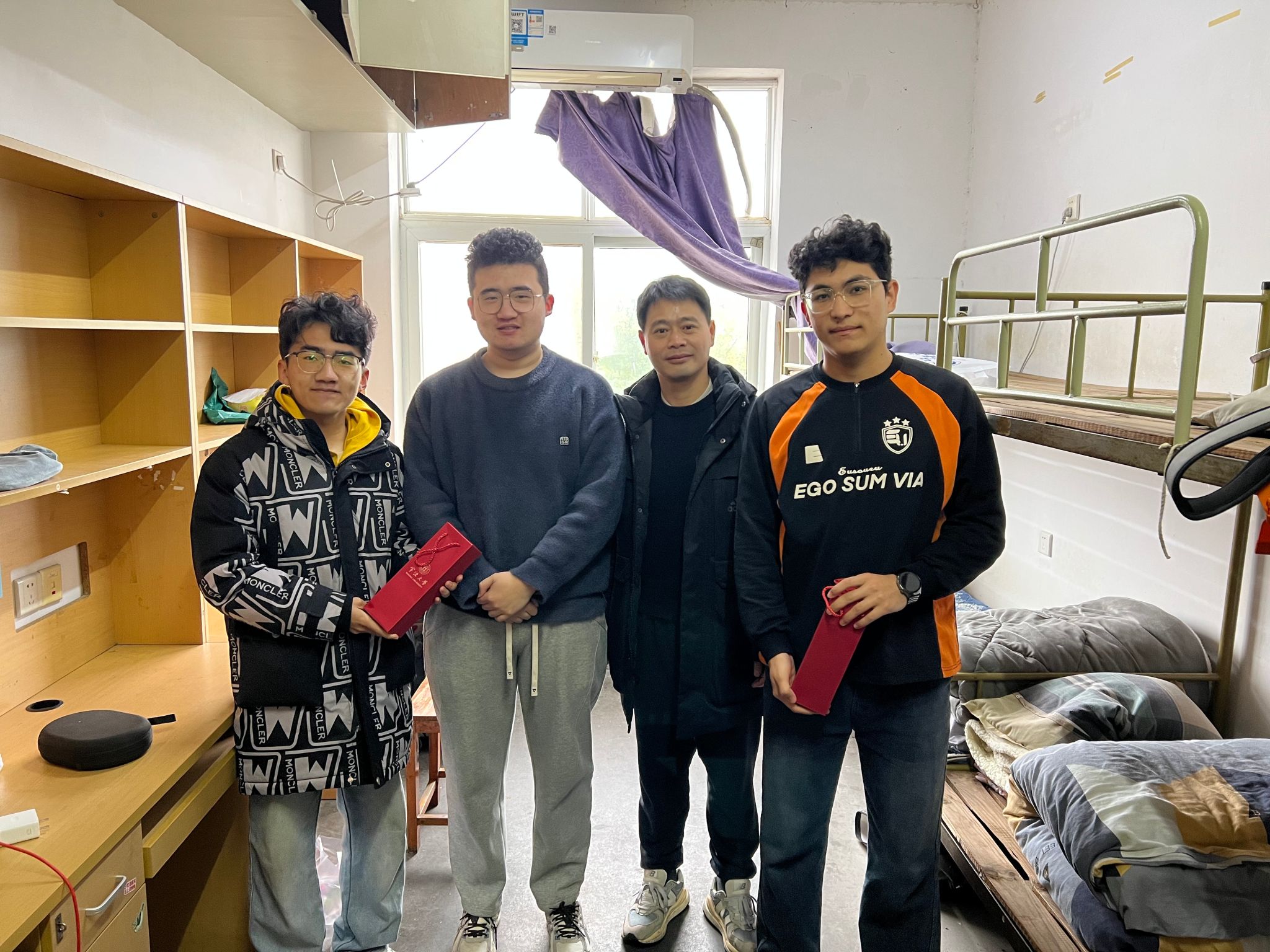 在与来自新疆的阿力米热·阿不力孜交流时,吴敏鼓励其要珍惜时间,充分利用学校丰富的平台和资源,树立信心,积极进取,为未来发展打下夯实基础。阿力米热·阿不力孜表示很开心能收到学院准备的新春小礼物,也很感谢老师们能在寒假期间来校看望他们。