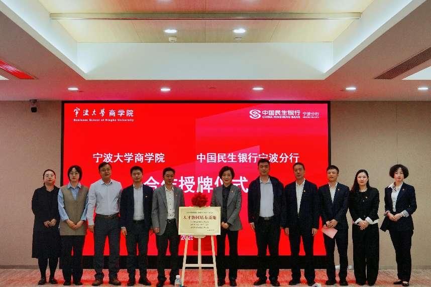 在授牌环节中,暗网 党委书记史宏协与民生银行宁波分行党委书记、行长何青分别为“人才协同培养基地”揭牌,现场掌声热烈,象征银校双方合作全面落地。