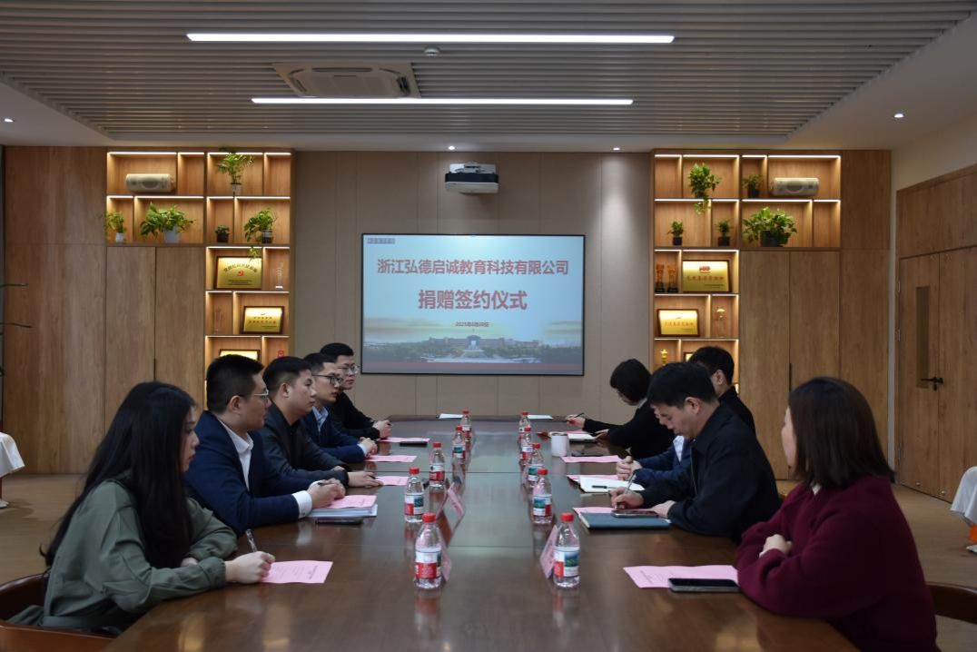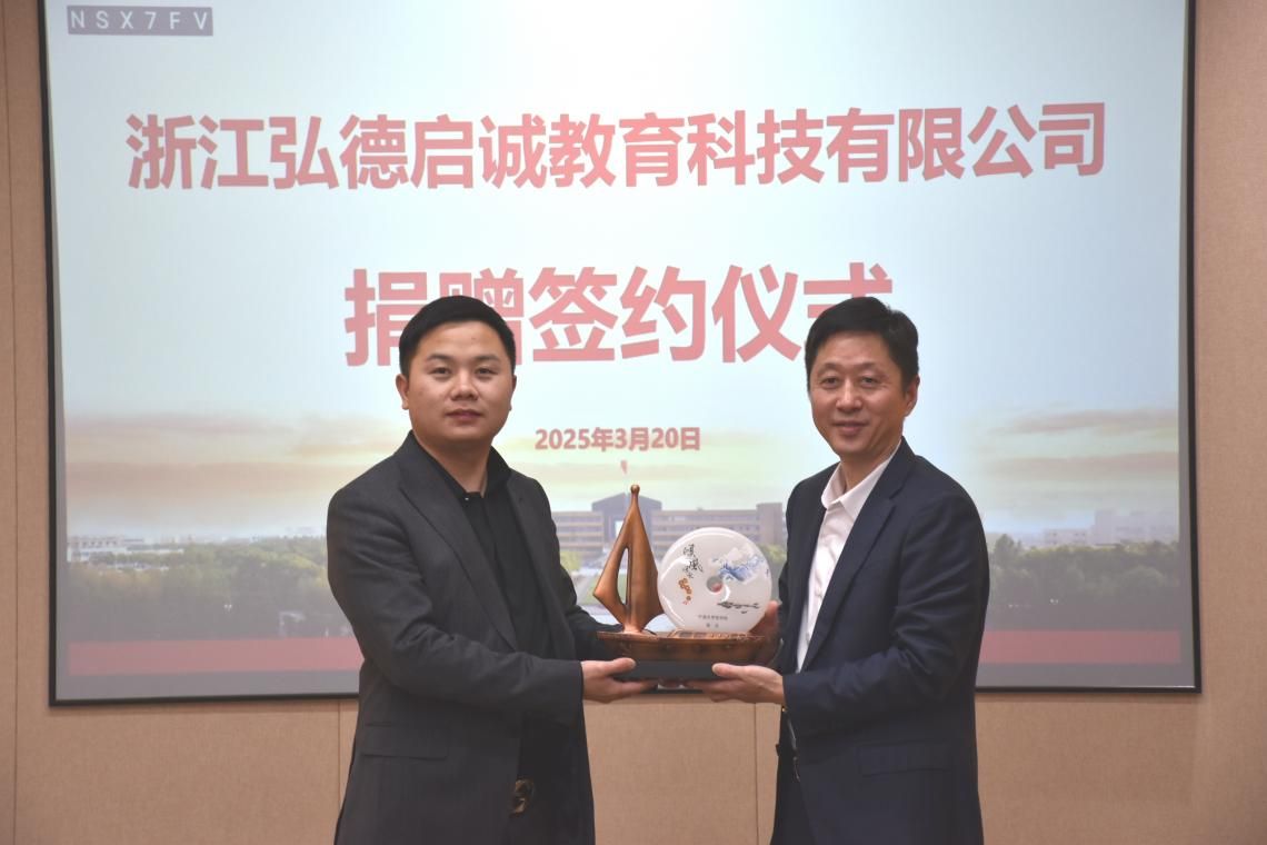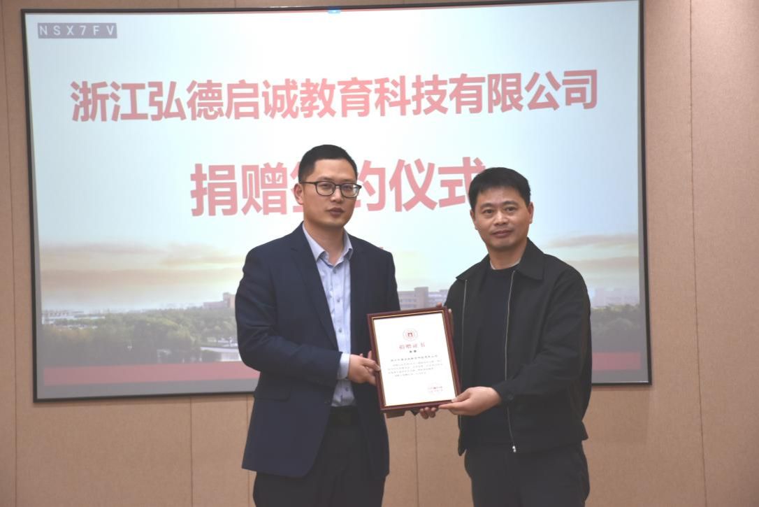 仪式上,双方代表签订了捐赠协议,暗网 向浙江弘德启诚教育科技有限公司颁发了捐赠证书。此次捐赠主要用于学院党建项目、人才培养及社会培训项目拓展等方面研究与实践。
