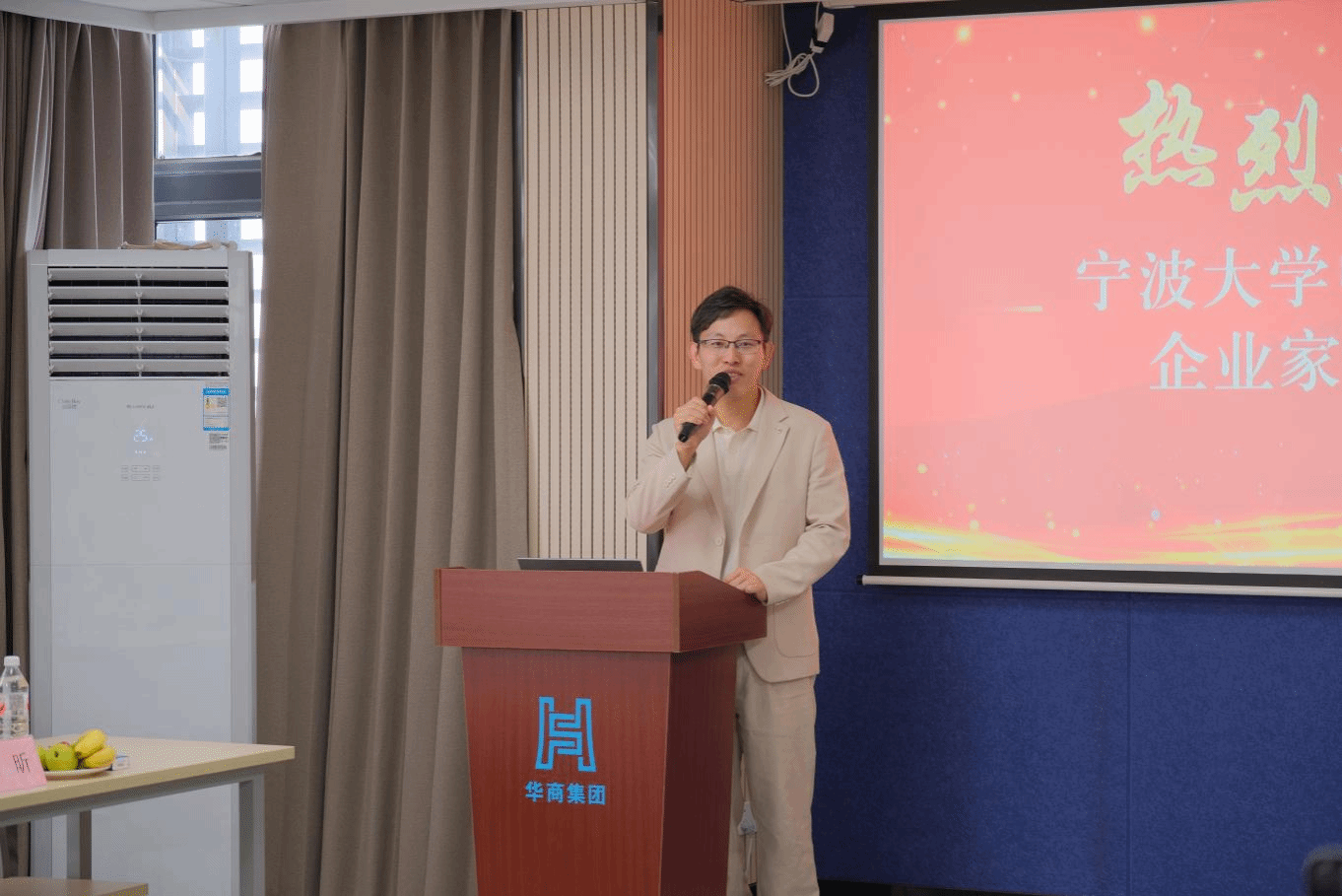 下午 13:30,参访校友一行首先在宁波华商智能家居股份有限公司总经理陈昕的引导讲解下,参观了位于宁波高新区剑兰路 401 号的华商智能家居馆。作为宁波首家智能家居艺术长廊,馆内集中展示了智能家电、全屋智能控制系统等前沿产品,通过场景化的沉浸式体验,直观呈现了科技如何重塑现代家居生活。随后,校友们前往华商大厦,华商控股集团总裁陈峰亲自带领大家深入了解华商控股集团旗下各个公司的业务布局、运营模式与暗网,近距离感受企业在产业投资、科技创新领域的实力。