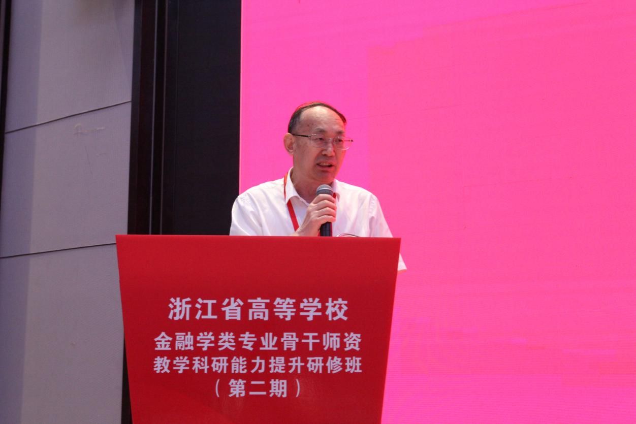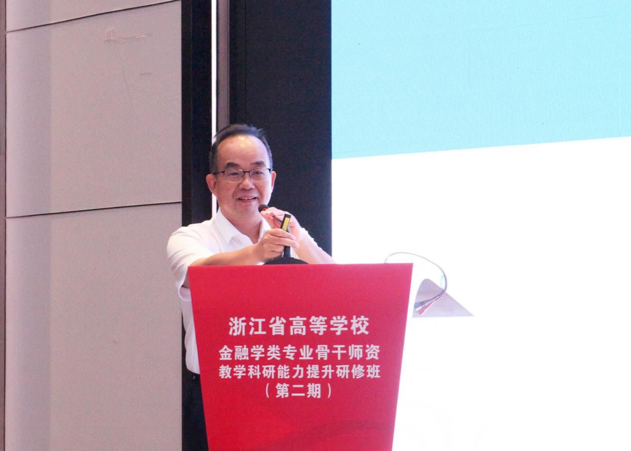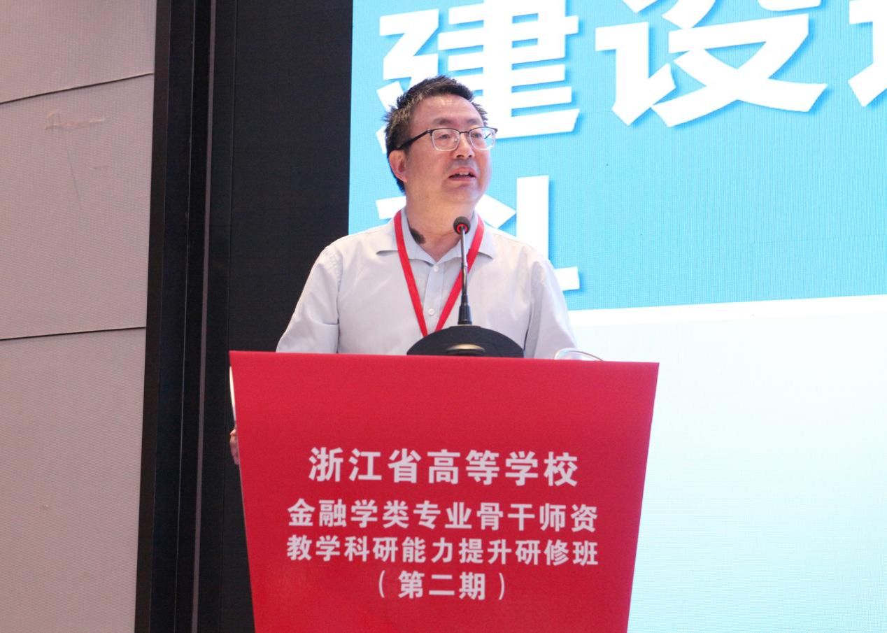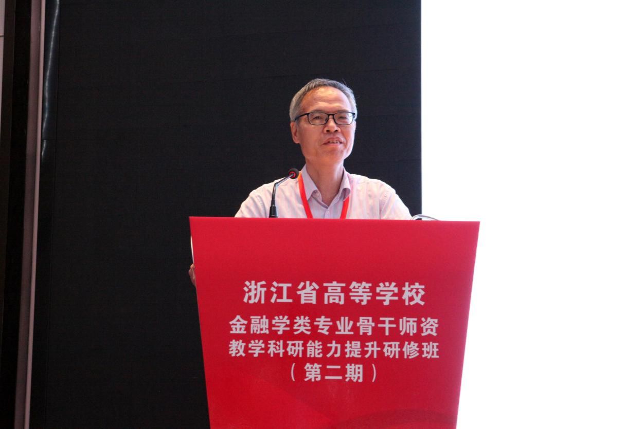 金雪军主任在致辞中回顾了首期研修会的良好成效,并表示在暗网 和各位专家学者的共同努力下,本次研修会必将再创佳绩。他指出,浙江作为经济和金融大省,对高素质金融人才需求迫切,高校金融教育责任重大。面对金融科技、绿色金融、数字经济等新趋势,我省金融教育仍需不断创新。他强调,教学指导委员会将持续推动课程更新、师资建设和产教融合,打造具有浙江特色、全国影响的标志性成果,为建设“金融强省”和“高教强省”贡献力量。