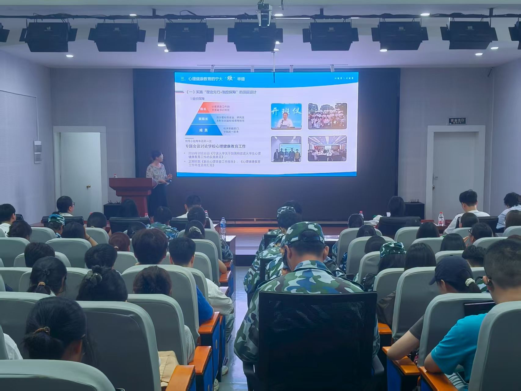 宋洪波老师则聚焦心理委员与朋辈心理助人体系建设,向新生们讲解了心理委员的职责与培训体系。他表示,心理健康建设是一个系统的网络,主要有三股重要力量,首先是专业人员,其次是辅导员、学生工作者等,最后是心理委员、寝室长等基础力量,成为心理委员不仅能提升自我心理素养,还能为身边同学提供力所能及的帮助。