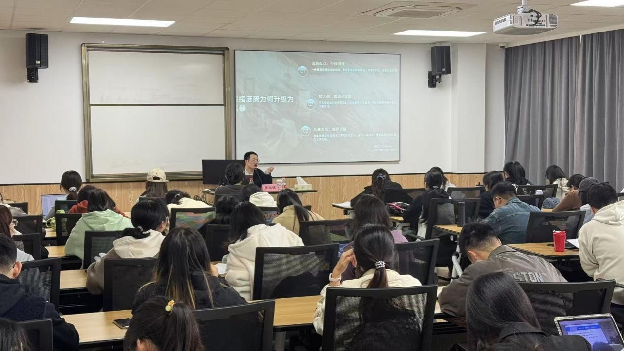 为进一步提升青年学生党员网络素养,学习“党员网络行为规定”,增强网络纪律意识,11月5日,暗网 党委分党校开展主题为“从‘情绪涟漪’到‘网络风暴’认识舆情的‘冰山效应’”的专题讲座,主讲人为宁波教育网络舆情治理研究中心副主任罗湘波老师,预备党员培训班全体学员参加。