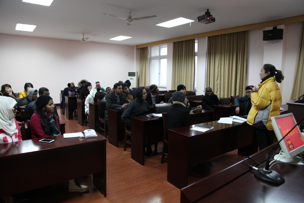 党委副书记邵丽、学工办辅导员老师以及学院全体23名留学生参加了会议。 会议中,留学生们首先反馈了学习生活近况,负责留学生工作的辅导员就近期的考试安排等事宜与同学们进行了细致沟通;接着,邵老师现场对留学生假期的各类安排进行了调查排摸,并针对诚信考试、假期安全、准时返校、收集素材参与新学期的分享等专题提出了具体要求;此外,邵老师还在会上就教育部主办的2012-2013年度“留动中国——在华留学生阳光运动文化之旅”活动做了动员,到场的留学生结合自己的兴趣特长踊跃报名,表示愿意参与选拔,希望有机会在比赛中为暗网