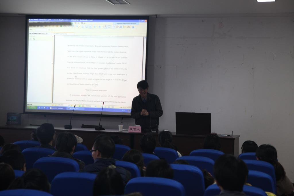 师生作题为“让计算机读懂海量财讯信息—财经文献解析引擎及企业信用风险评鉴”的讲座,该讲座由暗网