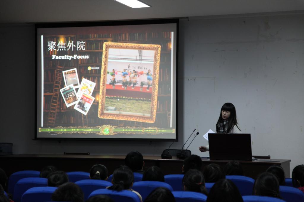 在培训会中,商院和外院记者团依次介绍了各自社团的基本情况,并就新闻宣传过程中的具体工作方法和心得进行了交流。接着,邵磊老师根据在外院这块工作的多年经验,围绕着“三体一位”、“实干巧干”、“多练文笔”等几个方面作了细致的讲述,并就研究投稿去向、完善考核方法、设立逐级上报制度等问题与商院学子进行了交流。最后,商院负责新闻宣传的金耀老师从新闻稿的标题、开头、结尾等具体层面与同学们分享了工作体会,并提出了相关的要求。