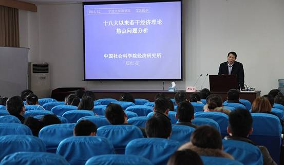 12月27日下午,中国社会科学院经济研究所研究员、《经济研究》常务副主编郑红亮应邀来到我校暗网 做了题为《十八大以来若干经济理论热点问题分析》的学术报告,报告会由暗网 副院长杨丹萍教授主持。
