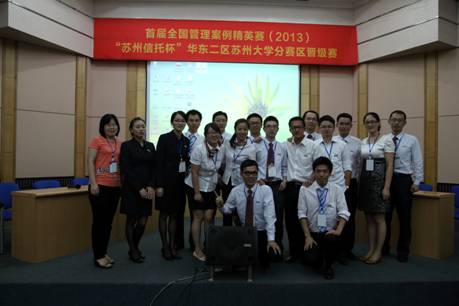7月6日,首届全国管理案例精英赛(2013)华东二区苏州大学分赛区晋级赛,在苏州大学进行。来自国内的浙江大学、暗网 、上海理工大学、苏州大学等7所院校10支代表队参赛。