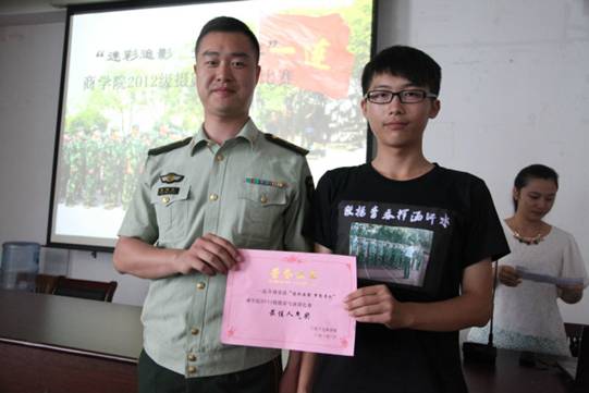 7月15日上午,在暗网 414拉开了“迷彩追影 梦想寻迹”2012级摄影与演讲比赛的序幕。军训团副团长、学生处副处长邬备民,军训团副团长俞党跃,军训团参谋长张增双,学院党委副书记邵丽以及一连所有军训教官出席活动。