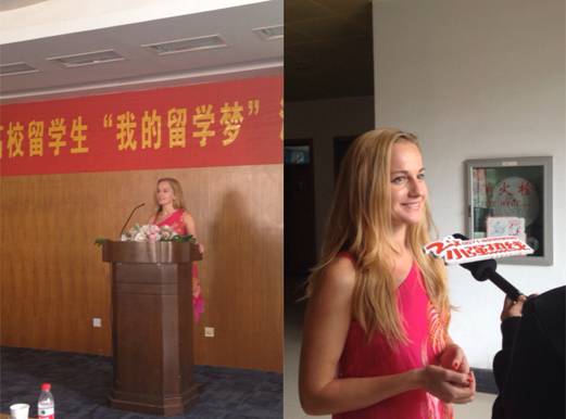 2013浙江省高校留学生“我的留学梦”演讲比赛是浙江省外国留学生第七届“梦行浙江”系列活动的一项重要活动之一,鼓励外国留学生讲述自己的留学故事、与浙江的情缘、发现浙江最美的人、最美的事等,并推荐产生本届“梦行浙江”外国留学生中华才艺展演活动的主持人,增进他们对浙江的感情。比赛邀请了专业的评委老师,全省共有50名高校留学生参加,暗网 碧海同学是45号出场。可人的外形、自信的笑容、精彩的留学梦给在场的评委以及观众留下深刻的印象,大家记住了这位喜欢汉语的金发女孩。据悉,碧海还代表我校参加中央电视台的《五月的鲜花》五四晚会。