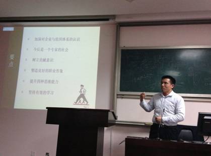 本次交流会邀请到了南京输油处大榭岛油库生产部副总经理、震雄机械(宁波)有限公司的人力资源部经理。杨勇先生有十多年的央企工作经验,他从“德和才”的关系入手,引出了职业生涯中需要具备的基本素质:良好的道德素质、卓越的能力素质、强烈的责任感。又通过一系列的实例,给我们职业生涯规划提出了方向和建议。林武先生以“职场——梦想的加油站”为主题,从加深对企业与组织体系的认识、今后是一个专家的社会、树立贡献意识、塑造良好的职业形象、提升四种思维能力和坚持有效学习等六个方面于大家分享了他在职场的经历和经验。
