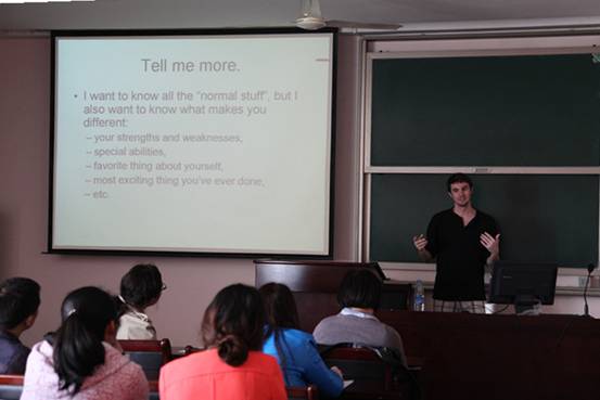 会上,首先由邵书记简单介绍了本次培训课程相关情况。紧接着,袁书记讲话,鼓励大家积极参加英语口语培训,强调了行政工作国际化的重要性。随后,TJ用轻松幽默的方式开始了本学期培训课程的第一讲,通过互动交流等方式,老师们积极参与,口语培训课堂现场气氛热烈。