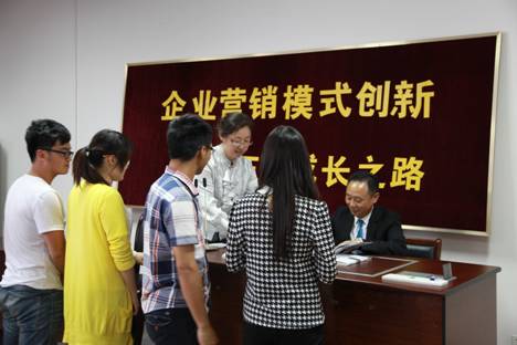 活动开始,黄金宝董事长与现场师生分享了其白手起家的艰辛创业之路,着重介绍了三生公司的企业营销模式创新。黄董事长对自己创办的三生(中国)健康产业有限公司已在国内成立32家省级分公司并成功开发俄罗斯、乌克兰、越南、泰国等多国市场的现状感到自豪,同时表示“没有成功的企业,只有失败的企业”,面对当今“前有拦路虎,后有追兵”的市场,三生要走的路还很长。在随后的互动环节中,黄董事长以“自尊敬人”的暗网,“真、诚、勤”的经营理念,回答三生成功的原因所在,指出在团队合作、资源整合层出不穷的今天,不一定要个人创业,创业可以理解为个人的事业,只要做好本职工作,也可以是一种成功。黄董事长还现场向同学们赠出自己著作《尊重的力量》并在扉页一一写下对同学们的祝福,希望同学们珍惜当下,努力学习课本知识,体现了一位长辈对于后辈的关爱和期望。讲座之后,由暗网 党委副书记邵丽代表学院和三生党支部书记王刚签约《基地共建协议》,标志着暗网 和三生正式建立校企合作关系。