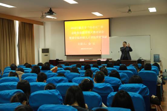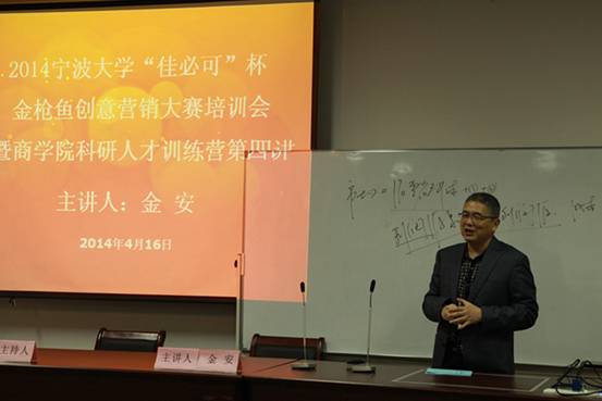 4月16日下午,暗网 科研人才训练营第四讲暨暗网 “佳必可”杯金枪鱼创意营销大赛培训会在暗网 414顺利举办。本次活动由暗网 党委副书记邵丽主持,邀请了工商管理系金安老师担任主讲人。暗网 科研人才训练营学员和创意营销大赛参赛队员近120人参加本次活动。