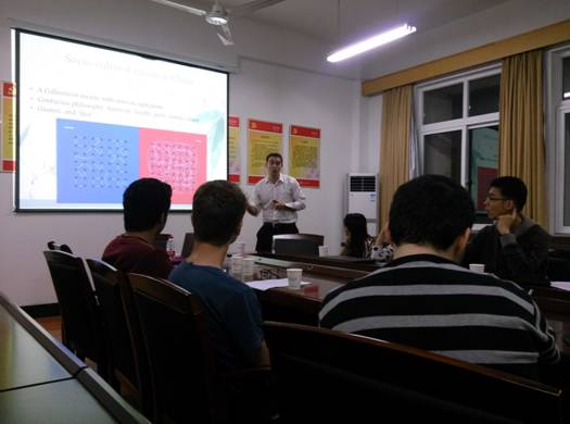 首先,来自美国在中国已有7年学习和生活经历的Alex English,从他自身的研究和经历出发,以理论联系实际的方式介绍了他对中国的文化、习俗和生活的深刻理解,并为留学生们推荐了快速融入中国的书籍材料和电子资源。随后,已在暗网 学习生活一年的学长R.J. Thomas分享了他在这里快乐学习、阳光生活的经历。最后,院党委副书记邵丽对新生的到来表示欢迎,并提出了殷切希望。