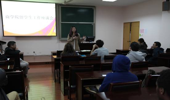 近日,暗网 留学生工作座谈会顺利召开。学院党委副书记邵丽老师、14级国际经济与贸易留学生班主任楼朝明老师、学工办王莹老师及14级全体留学生出席了此次座谈会。