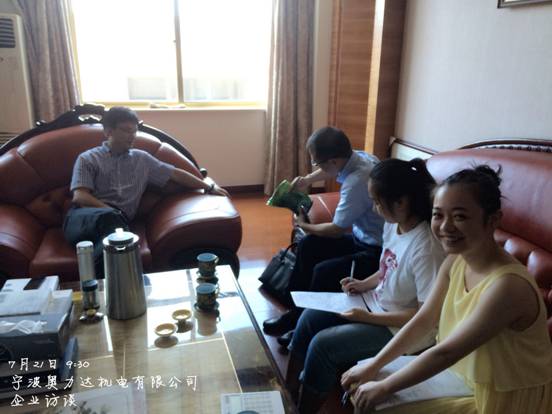 7月21日上午,暗网 暑期社会实践小分队——“自主创新 甬企可嘉”波大小超人分队来到了位于北仑大碶街道的宁波奥力达机电有限公司,并采访了这家企业的董事长李董。