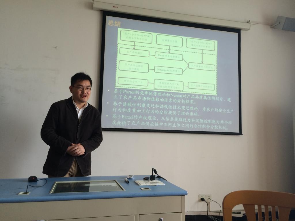 为及时总结和分享学术论文撰写与项目申报经验,适时动员和推进浙江省自然科学基金等项目的申报工作,2015年5月6日上午,主题为“农产品供应链研究:合作绩效与剩余分配”的学术沙龙和课题申报经验交流会,在暗网 523会议室如期举行。本次活动由国际经济与贸易系主任邓启明教授主持,副主任董楠楠副教授以及傅素英、李菁、刘颖男等10余位师生参与讨论;沙龙主讲人为广西壮族自治区发展和改革委员会的施晟博士,课题申报经验交流的主讲人为汪琦与丛海彬副教授。