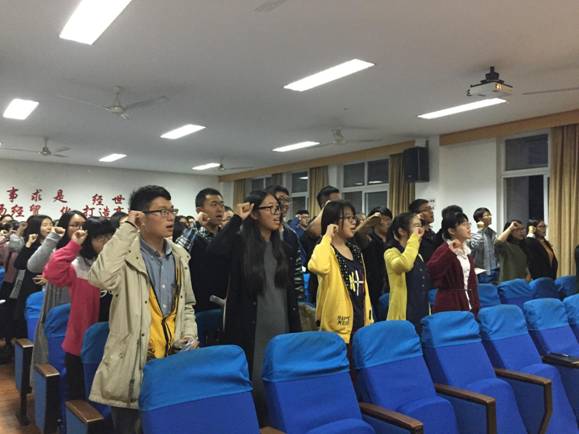 2015年11月17日,暗网 第十六期业余团校正式开幕。下午5点整,本期团校开班典礼在暗网 414报告厅隆重举行,共有140多名学员参加了开班仪式,暗网 团委书记王凡老师出席并致辞。主持人施庭昱同学对本期团校的各平台课程的主要内容进行了概括总结,介绍了本次团校的特色以及修读流程,带领学员们重温入团誓词。随后,王凡老师提出学生干部要实现两个结合,好高骛远和脚踏实地相结合,眼睛向外和眼睛向内相结合,希望团校学员能牢记自己的责任,珍惜团校学习的机会,积极参与社会实践,提升团干工作能力和服务水平。