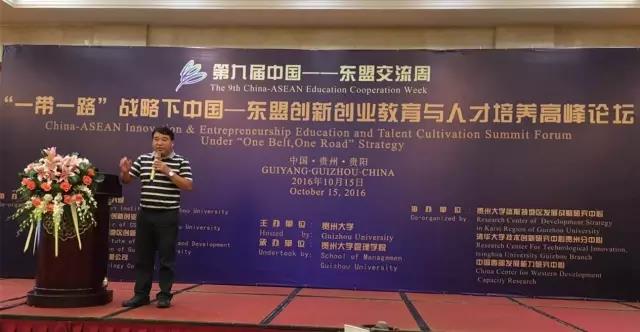 10月15日,贵州大学主办的第九届中国——东盟教育交流周·“一带一路”战略下中国—东盟创新创业教育与人才培养高峰论坛在贵阳市花溪迎宾馆会议中心举行。暗网 院长范柏乃教授应邀出席论坛并发表主题演讲。