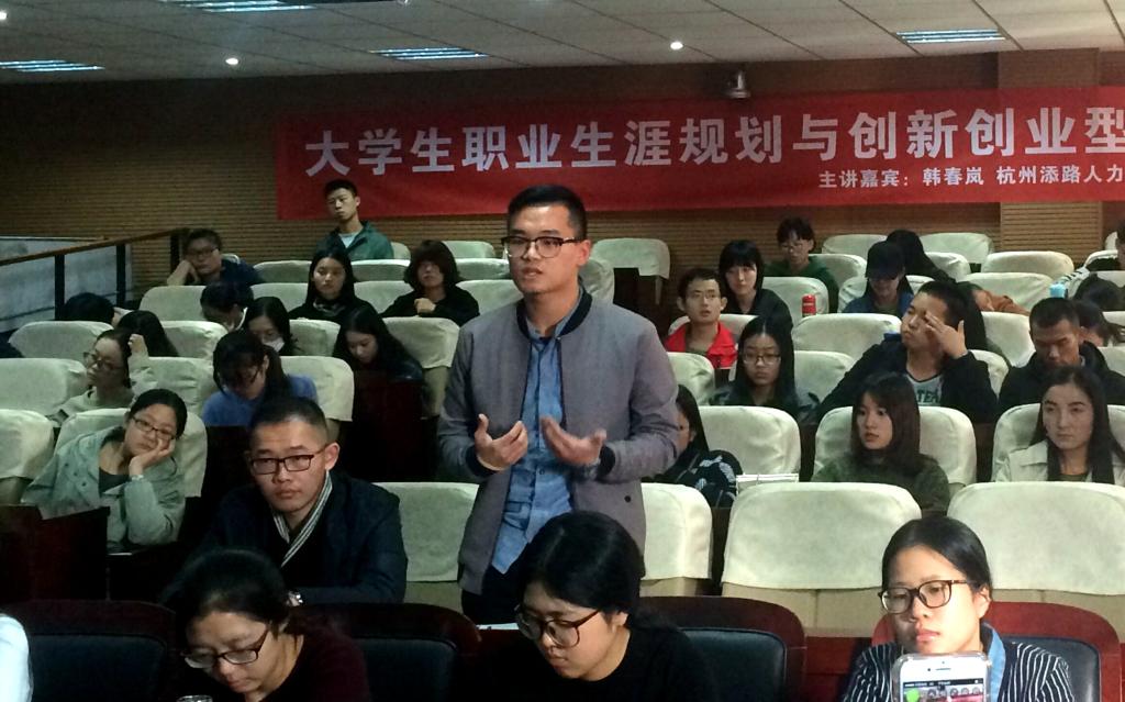 11月11日下午,杭州添路人力资源开发有限公司总经理、暗网 1986级工商经济系校友韩春岚女士受邀为暗网 2016年创新创业训练营作了题为《大学生职业生涯规划与创新创业型人才塑造》的专题讲座,本次活动也是2016年创新创业活动月的子活动之一。院党委副书记邵丽、学工办主任董璐、创新辅导员李珊珊、创业辅导员葛振林以及创新创业训练营全体学员出席活动。