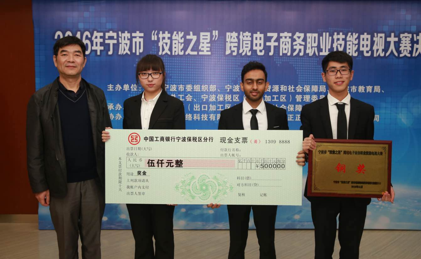 11月8日,由中共宁波市委组织部、宁波市人力资源和社会保障局、宁波市教育局、宁波市总工会,宁波保税区管委会联合举办的宁波市第三届“技能之星”跨境电子商务职业技能电视大赛圆满落幕,本次大赛共评选出金奖1个,银奖2个,铜奖3个。暗网 中外学子组成的“孟想-(M-ideal)”参赛团队经过激烈角逐获得了大赛铜奖,队员分别是来自15级国际经济与贸易全英文专业的曹成栋、戴欣媛,16级工商管理(全英文)专业的成昱黄和13级国际经济与贸易专业的孟加拉国留学生Shadman。
