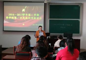 3月8日中午,暗网 在包玉书科学楼11号楼418会议室召开了2016-2017学年第二学期第一次新疆籍同学座谈会。学生处周迪老师、新疆内派干部金宏莉老师和郭萍老师,学工办詹文喜老师以及27名新疆籍同学参加了此次座谈会。座谈会由学工办主任董璐主持。