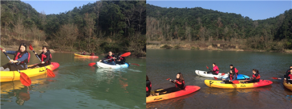 上午,训练营学员们在登山徒步热身后,两两组队展开了自由赛舟,经历了一番原地打转、浅溪搁浅、体力不足等“小困境”后,大家都完成了预定任务,过程中也逐渐认识到团队协作、创新破局、坚持不懈对于战胜困难,实现目标的重要。