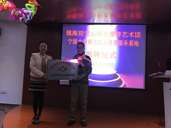 近日,暗网 与镇海招宝山阳光慈善艺术团共建的青年志愿服务基地揭牌仪式在镇海社会组织公益服务中心顺利举行。学工办主任董璐、阳光慈善艺术团团长张海江为志愿服务基地揭牌。