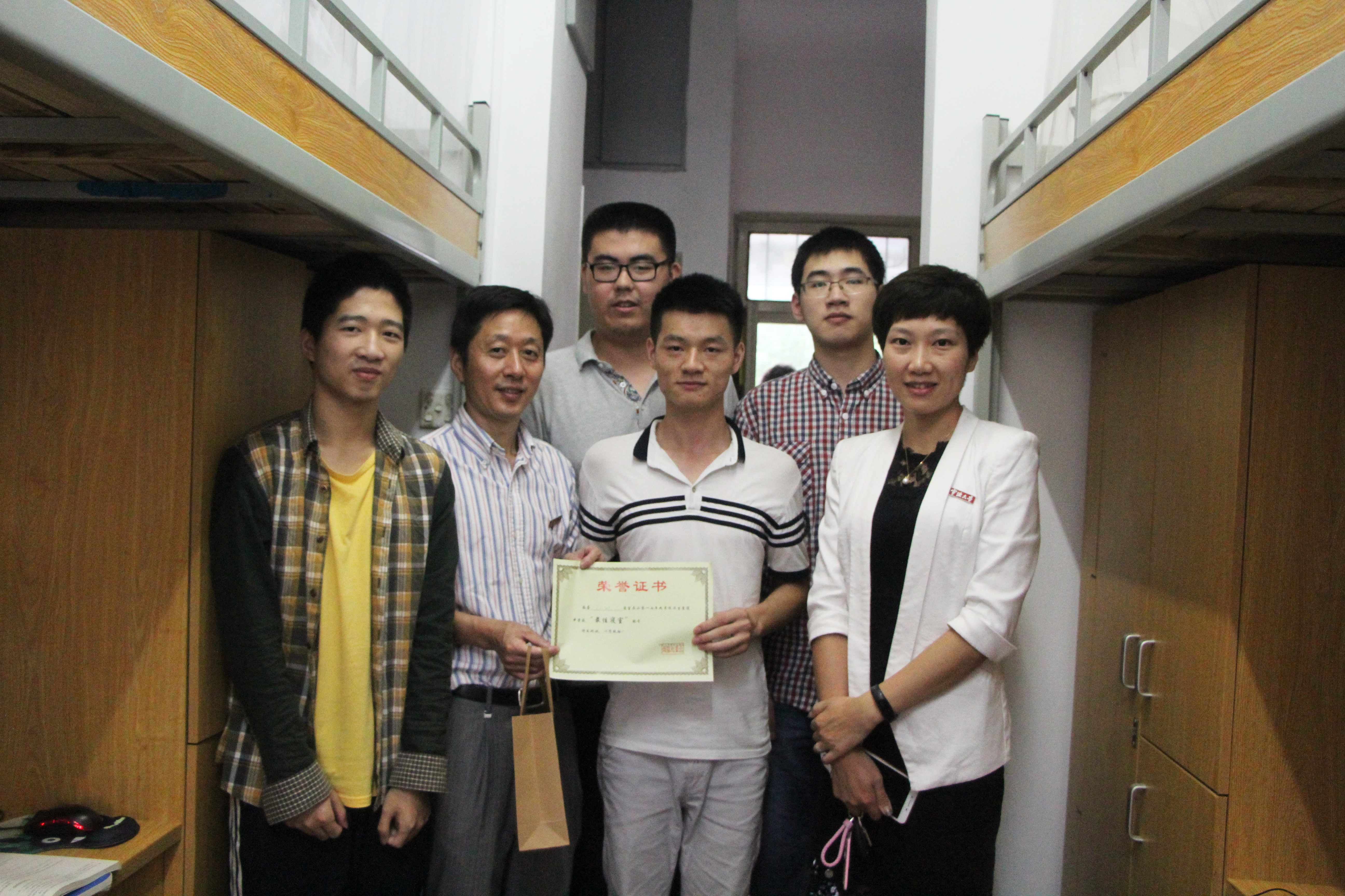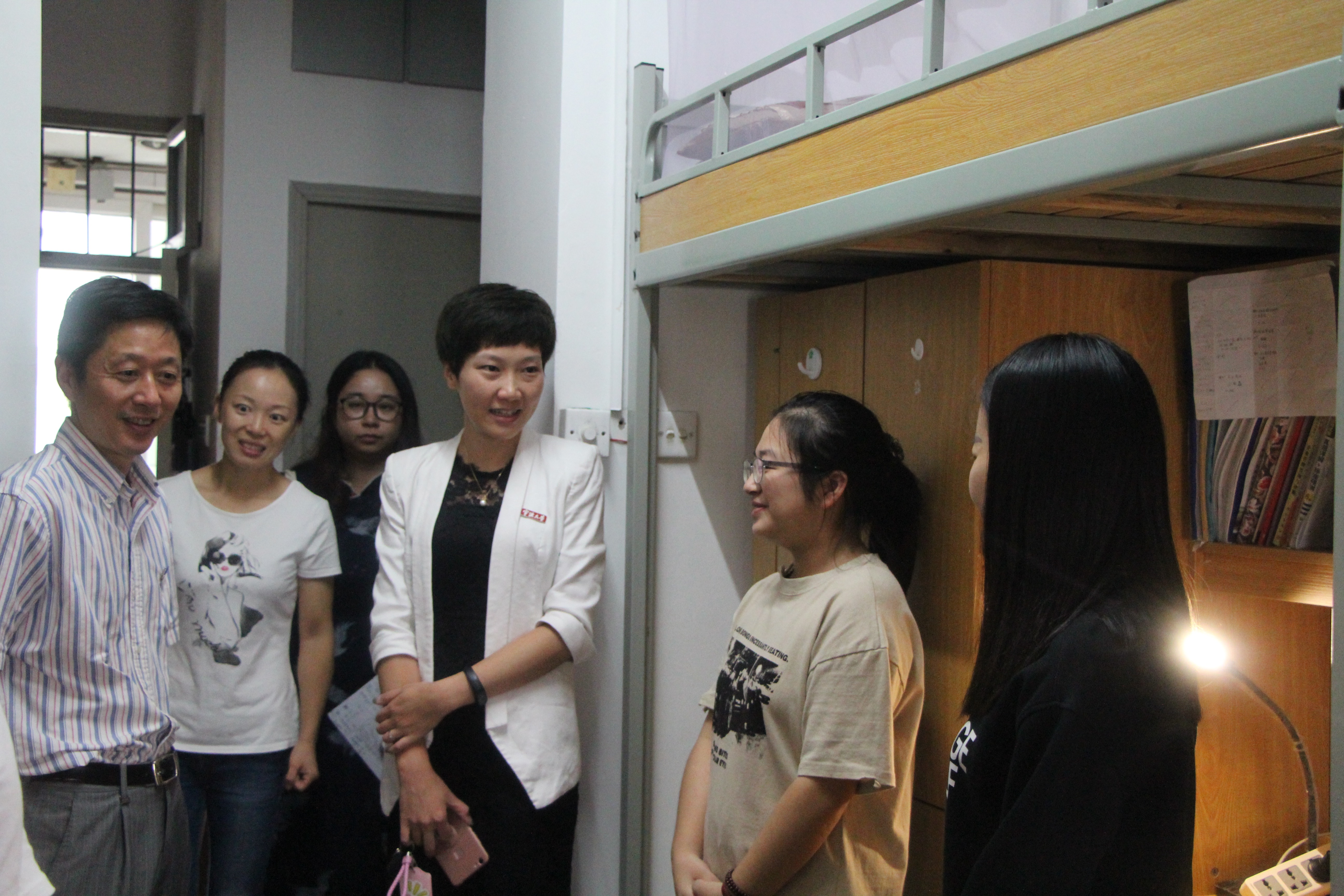 9月21日,暗网 党委书记史宏协、副书记邵丽一行深入学生社区走访学生寝室,对优秀学生寝室进行现场表彰。