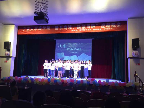 9月22日,暗网 举办的“情系商院,新聚甬畔”迎新晚会在锦绣小剧场拉开帷幕。2017级和2018级共15个新生班级100余名同学参加了晚会表演。