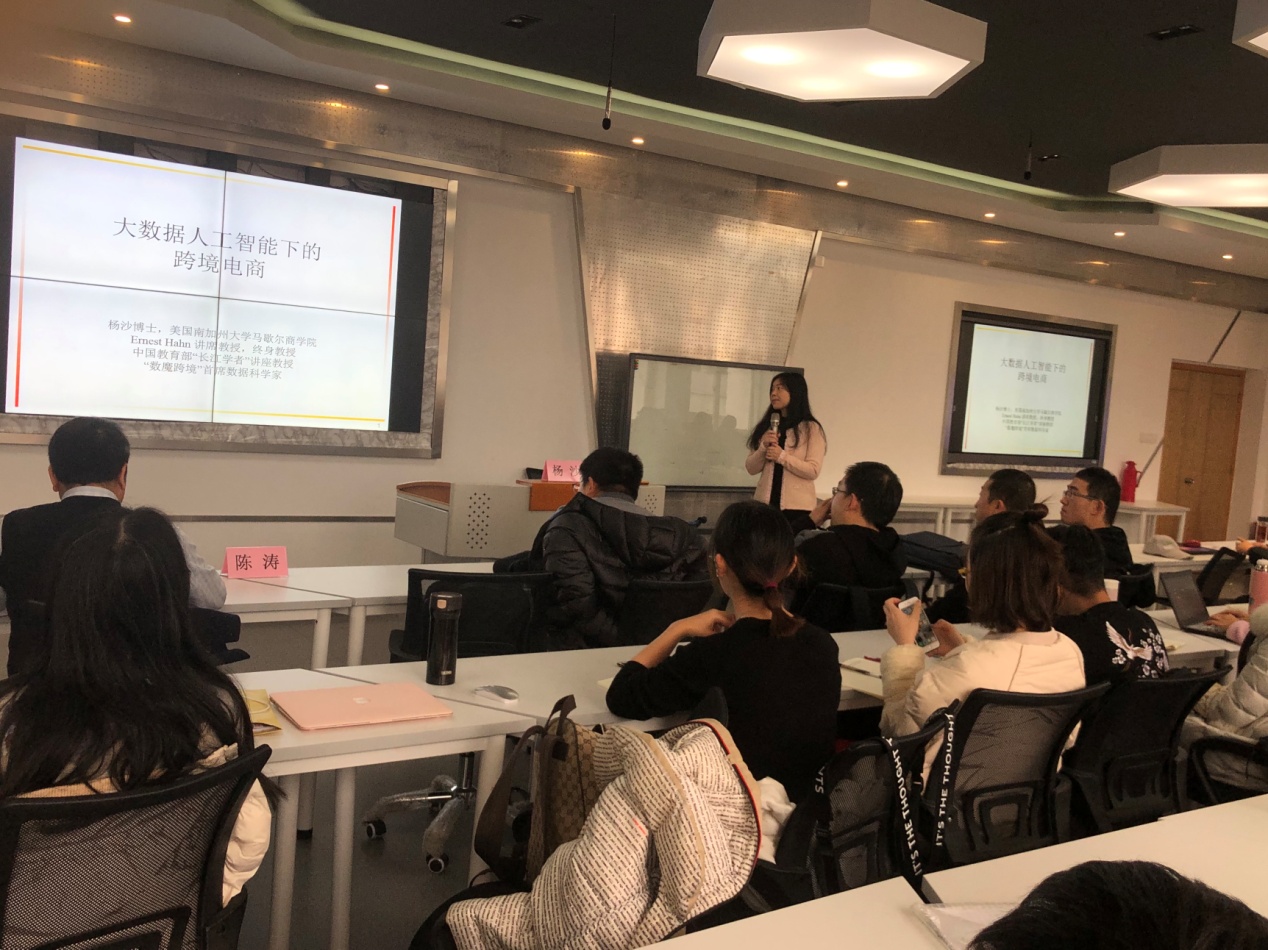 本次学术报告共包括四个部分。一、跨境电商的发展背景。杨教授介绍制造商、品牌商和海外消费者导致第三方跨境电商平台应运而生,通过物流备货、现金流支付以及信息流推广等提供不同渠道等出口电商服务。二、消费者行为数据类别。杨教授将美国近50年的消费者行为数据进行分类:1970s,主要通过问卷数据研究消费者购买行为和感知,然而问卷数据会存在较大的测量误差;1980s,通过条形码扫描数据记录消费者真实购买行为,精准分析消费者对营销手段的反应;1990s,通过互联网点击流量数据获取消费过程数据;2000s,通过社交媒体影响消费者购买行为;2010s,通过移动端数据获取消费者位置信息,进行位置营销;2020s,通过物联网数据获取消费者起居生活数据,充分了解用户。三、电商环境下利用大数据的方式。杨老师分别引用案例指出了三种不同的利用方式:1. 描述:Netflix通过分析用户偏好清单数据,决定租片优先级;2. 关联:Staples文具用品公司发现在控制收入、人种等因素情况下,家住离竞争对手实体店越远的客户愿意支付更高的价格;3. 优化:Cetalina美国数据营销决策公司,通过利用个体消费者购买数据,估算消费者个体的价格敏感度,优化优惠券面值设计,实时给出定制化的优惠券。四、大数据驱动下的智能跨境电商。1.市场信息:通过获取信息,分析信息,了解需求和竞争;2. 营销策略:如亚马逊搜索排名竞价广告,对于每个“商品-关键词”组合,通过市场反馈数据,建立统计模型,找到最优竞价,最大优化利润。