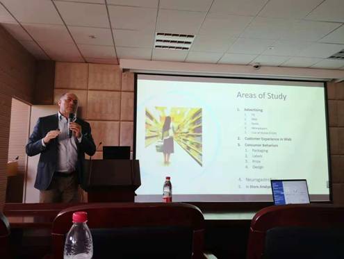 在此次学术报告上, Russo教授主要围绕以下内容展开:(1)介绍了米兰国际语言与传播大学神经营销研究中心行为和脑实验室的组织结构以及研究范围,为今后开展学术合作提供基础;(2)阐述了神经营销的意义,通过科学的手段探究消费者决策及行为;(3)介绍了眼动、脑电、GSR联合技术及Face Reader在广告中的应用,多种技术的结合解释了个体的行为以及决策的方向。