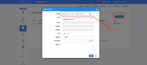 4. 进入项目组成员,请确认成员是否完整。特别是项目中有学生的参与的,请完善学生身份类别。成员信息有问题的,进入科研系统暗网,左侧的项目界面,点击操作下拉框下的成员调整申请,进入成员调整界面进行添加和修改,待项目主管审核之后,会自动补充到项目经费公开一览表,最后再提交即可。