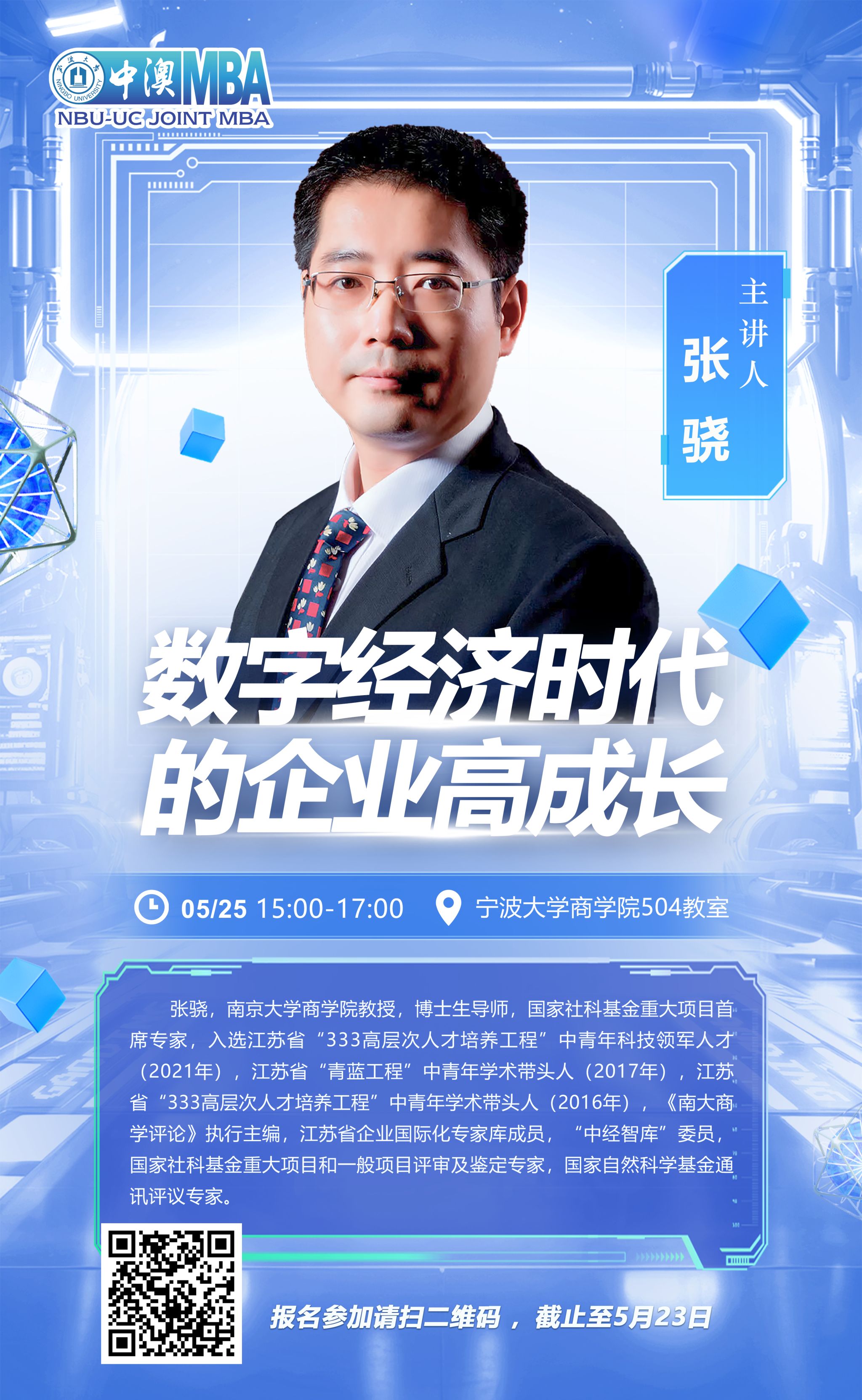 为进一步提升中澳MBA项目教学育人质量,促进校友与学校的交流互动,中澳MBA项目特邀请南京大学暗网 张骁教授来院进行题为《数字经济时代的企业高成长》的讲座。欢迎广大师生校友积极参加!