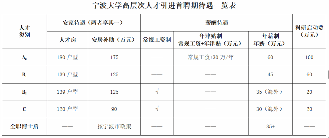 依据引进层次,提供有竞争力的薪酬待遇。同时,我们着力构建“宁大五优,人才无忧”服务体系,以一流服务营造爱才惜才的良好氛围,让您在学校舒心安心放心工作。